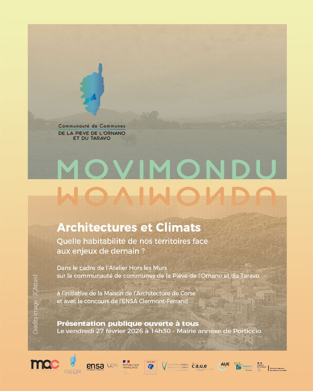 Notre Communauté de communes accueille pour la seconde fois l’Atelier Hors Les Murs de la Maison de l’Architecture de Corse, en partenariat avec l’ENSA Clermont-Ferrand, du 23 au 28 février 2026.