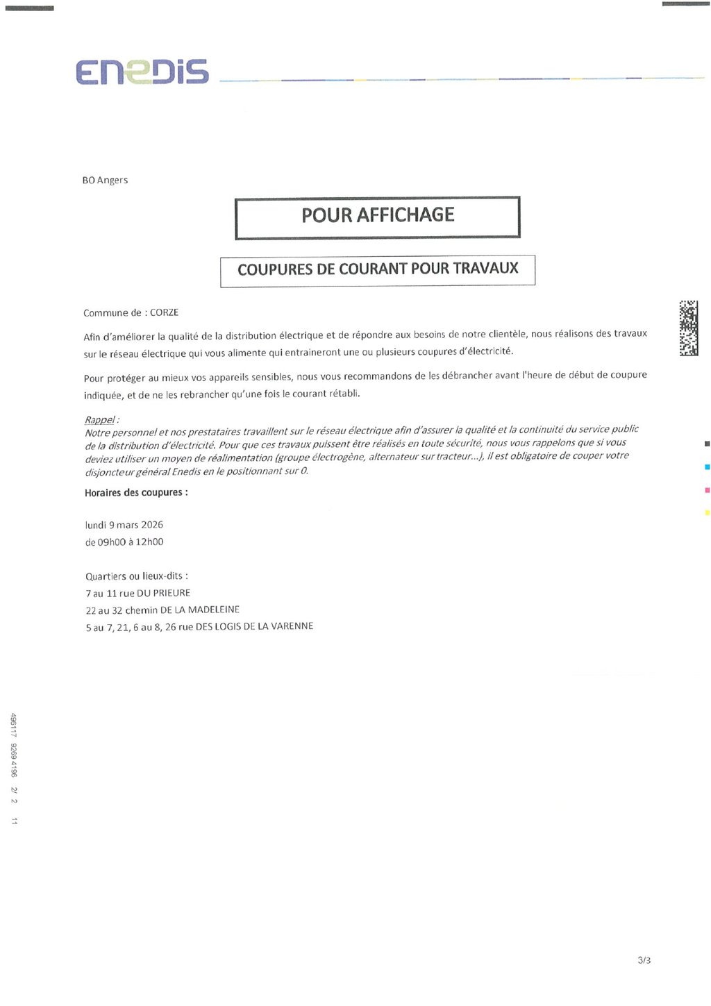09/03/2026 COUPE D'ÉLECTRICITÉ