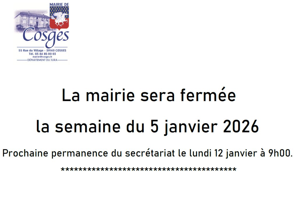 Prochaine permanence du secrétariat le lundi 12 janvier à 9h00.