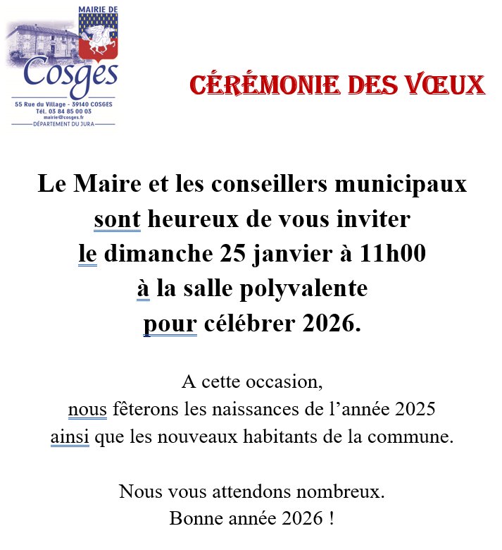 Vœux de la mairie le dimanche 25 janvier 11h à la salle polyvalente
