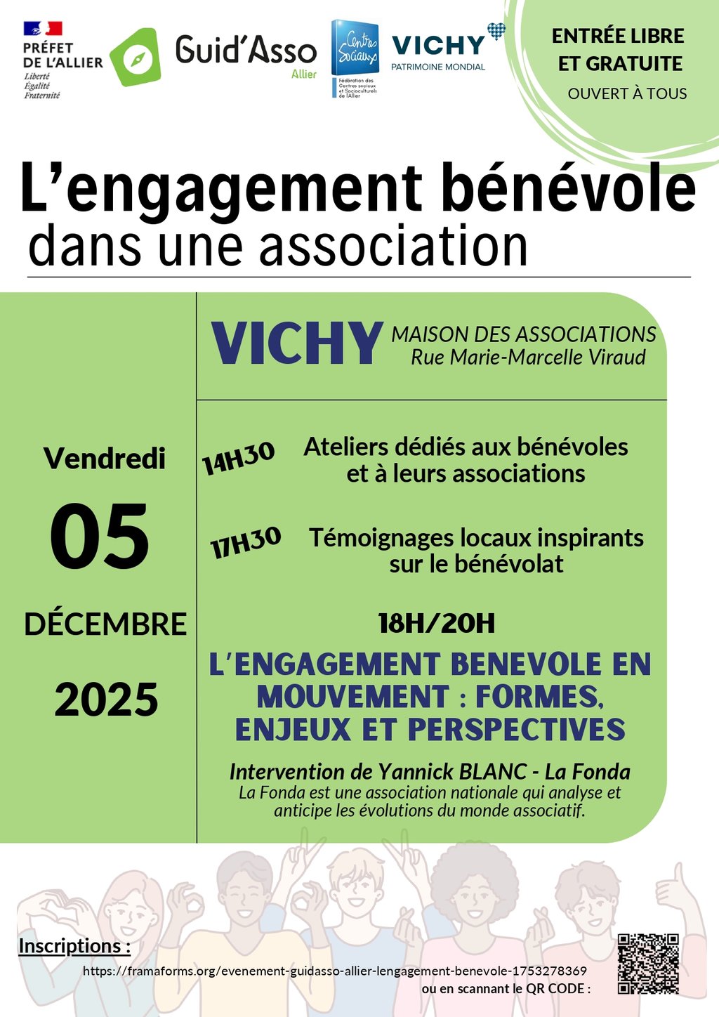 Formulaire d’inscription : https://framaforms.org/evenement-guidasso-allier-lengagement-benevole-1753278369