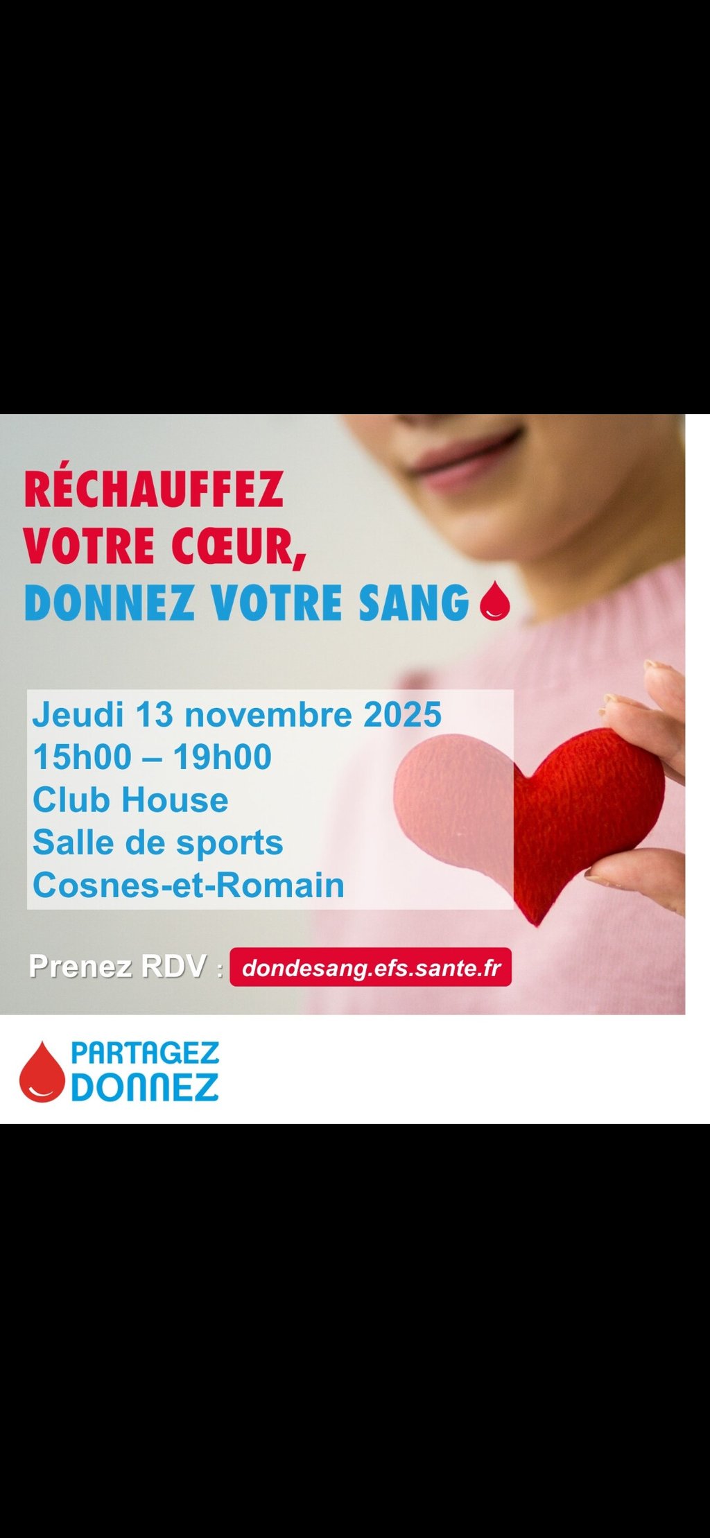 DON DU SANG A COSNES LE JEUDI 13 NOVEMBRE