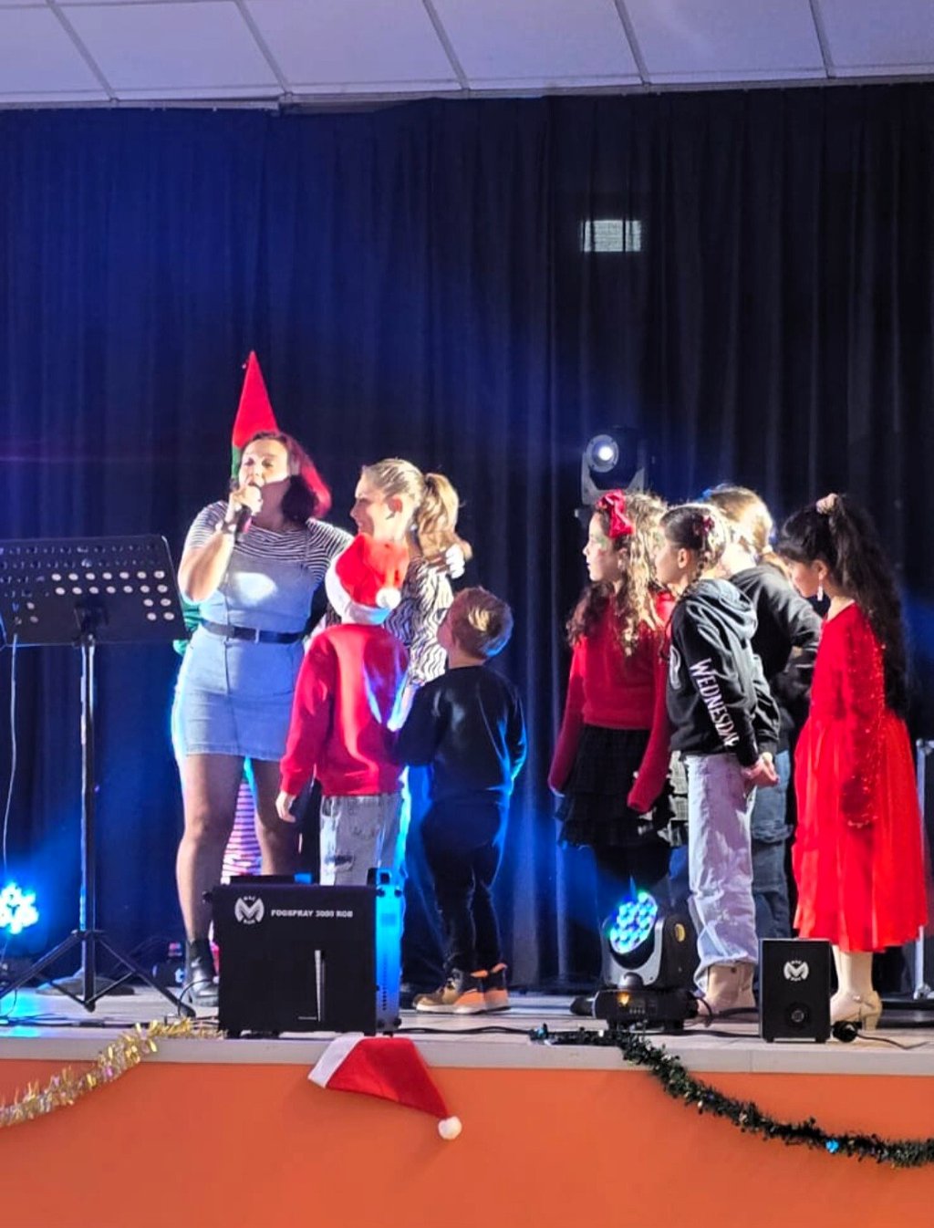 En attendant la venue de Saint-Nicolas, un spectacle leur a été proposé ; ils ont chanté et dansé. Un lutin malicieux et un gros ours en peluche les ont également divertis.