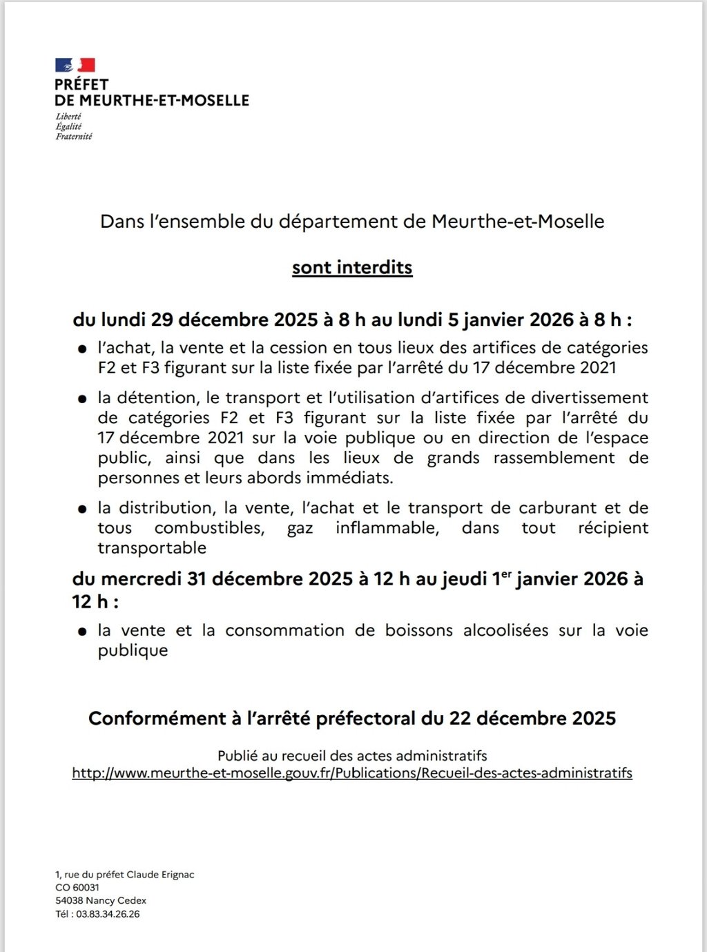 ARRÊTÉ PRÉFECTORAL