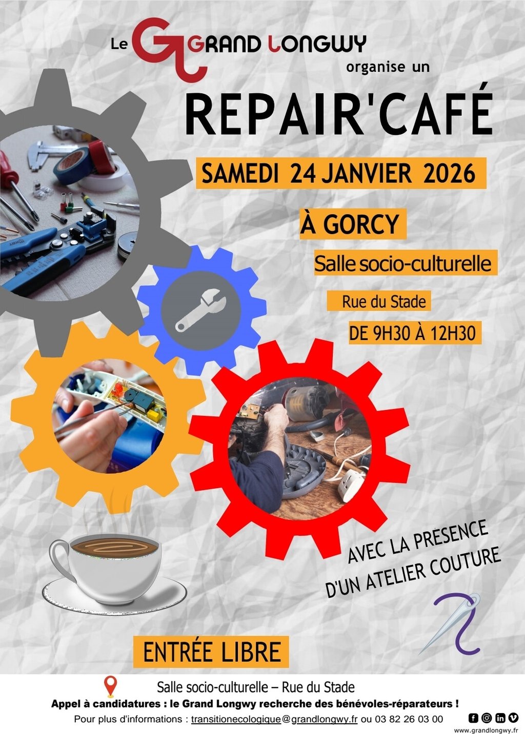 L’Agglomération du Grand Longwy et la commune de Gorcy ont le plaisir de vous inviter au prochain Repair Café !