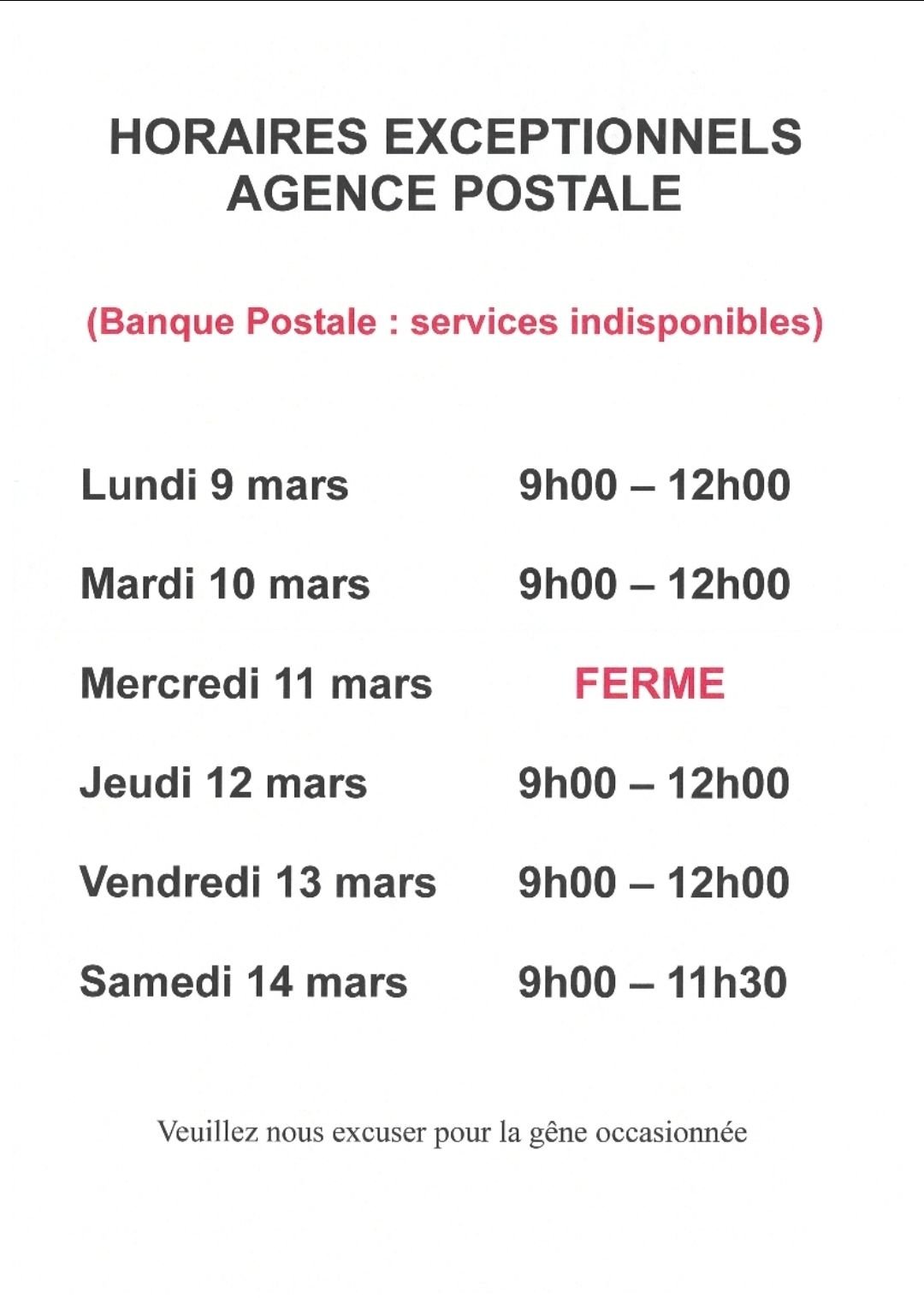 AGENCE POSTALE FERMÉE LES APRÈS-MIDI
