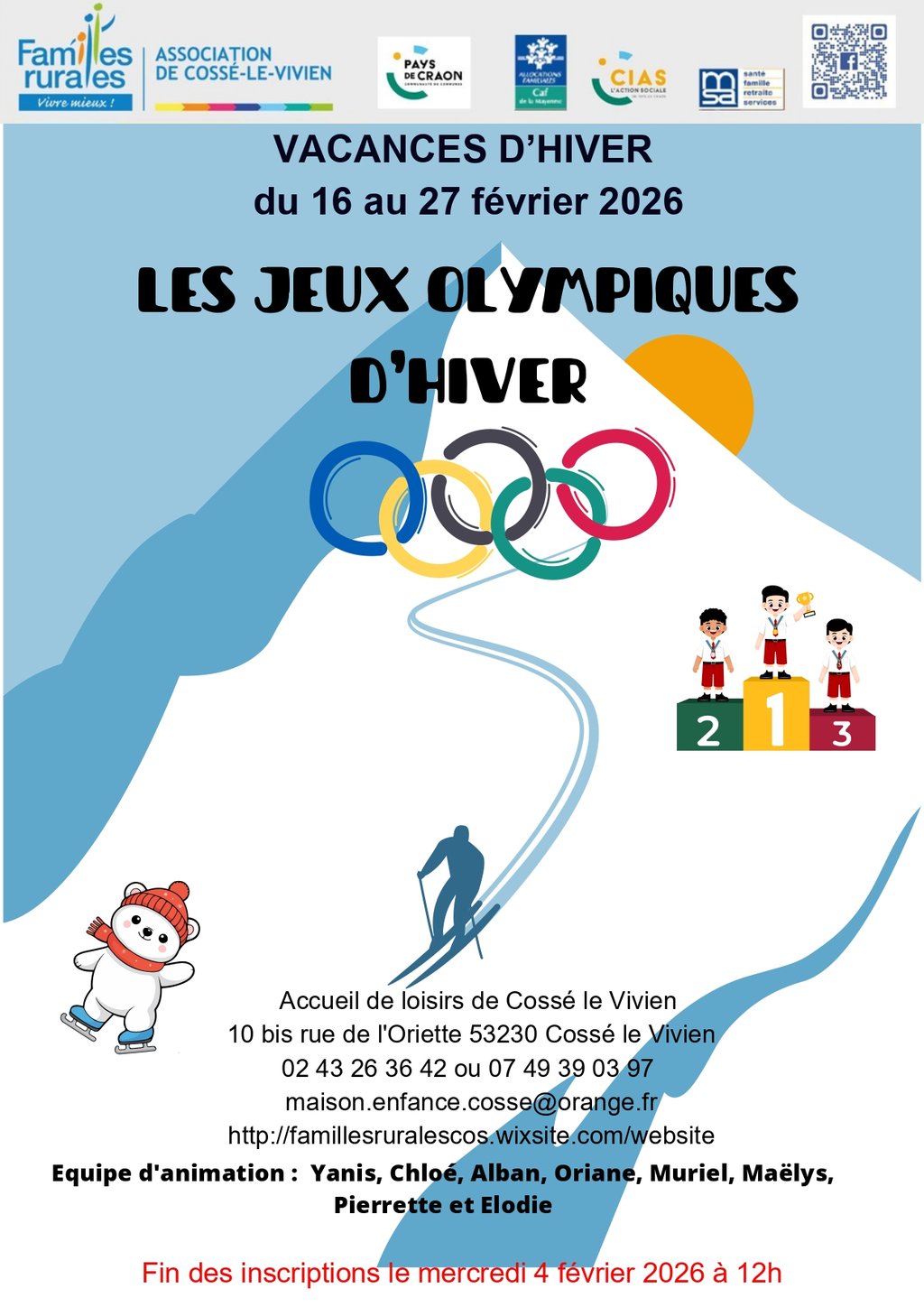 Le programme des vacances d'hiver est sorti ! Du 16 au 27 février, les enfants découvriront les Jeux Olympiques d'Hiver !