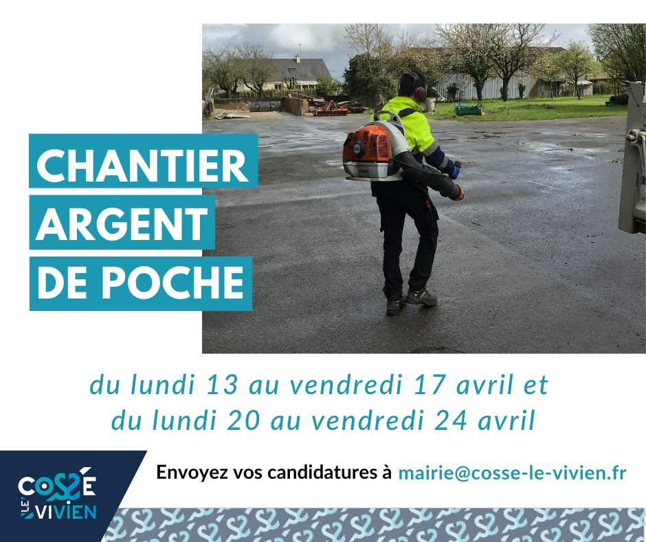 INSCRIPTIONS OUVERTES POUR LES CHANTIERS ARGENT DE POCHE DES VACANCES DE PRINTEMPS !
