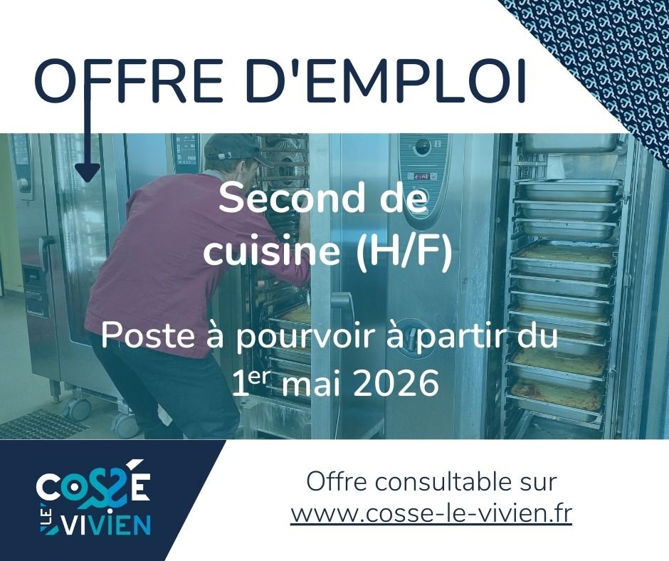 Offre d'emploi complète : https://www.cosse-le-vivien.fr/mairie-cosse/tellement-proche/la-mairie-recrute/offres-emplois