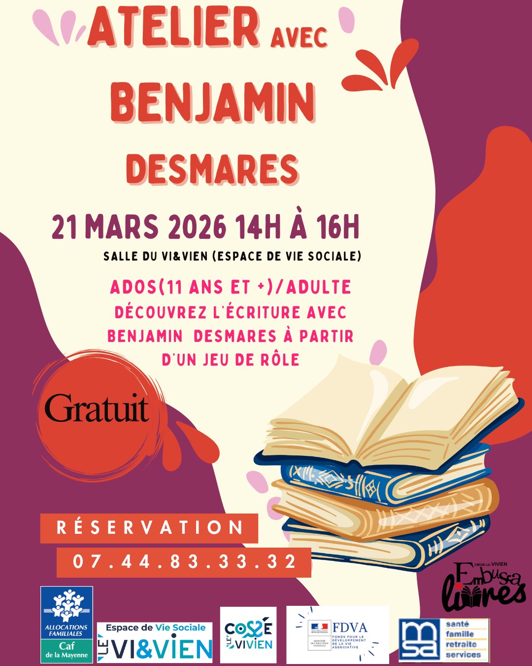 Gratuit, sur inscription : 07 44 83 33 32