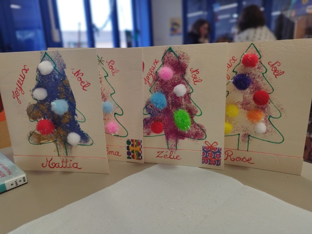 Les cartes de Noël sont maintenant finalisées et les enfants peuvent être fiers de leurs jolies créations, pleines de couleurs et de magie 🎨🎄