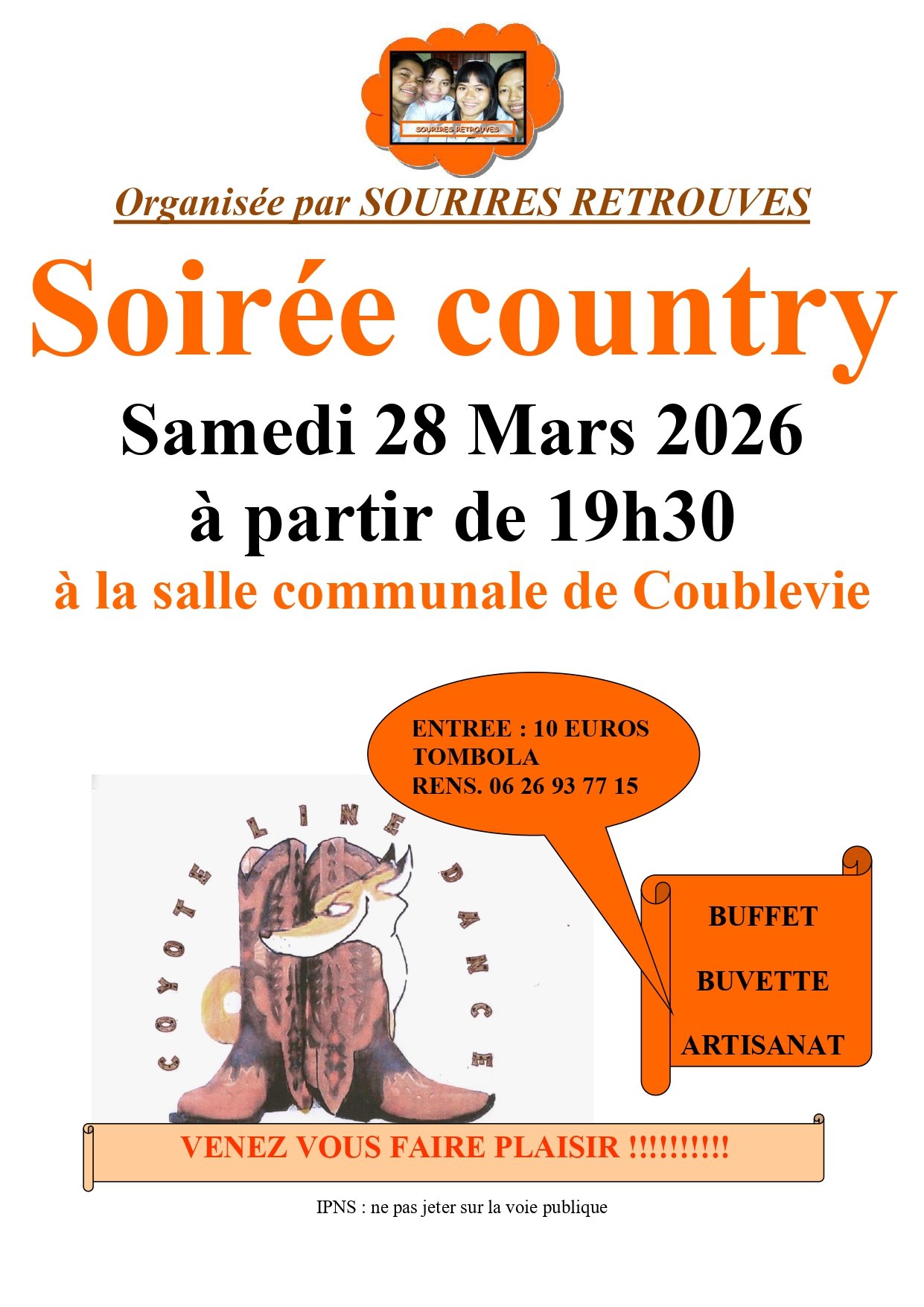 Venez vous amuser à la soirée Country organisée par Sourires Retrouvés !