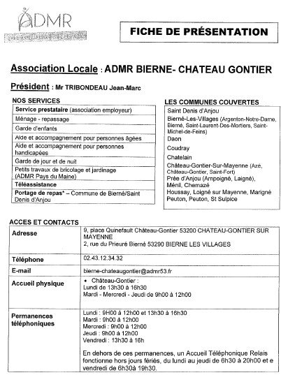 L’ Association ADMR de Bierné Château-Gontier intervient sur 13 communes :