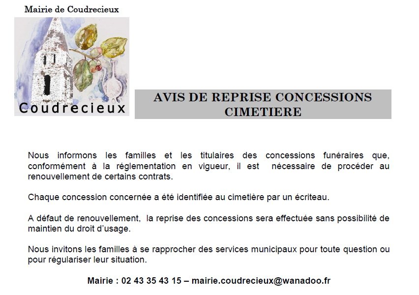 Mairie : 02 43 35 43 15 - mairie.coudrecieux@wanadoo.fr