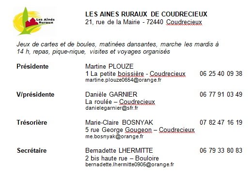 Jeux de cartes et de boules, matinées dansantes, marche les mardis à 14repas, pique-nique, visites et voyages organisés
