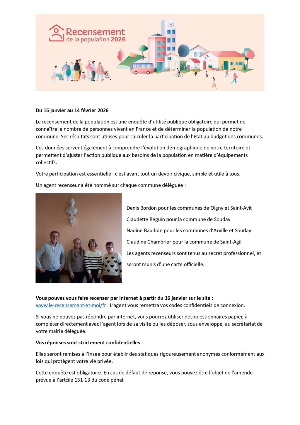 Les agents recenseurs ont été nommés sur chaque commune déléguée: