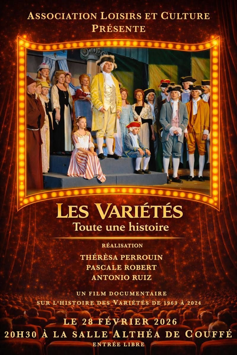 L'Association Loisirs et Culture vous propose un documentaire sur Les variétés de 1963 à 2024, réalisé par Antonio RUIZ et Pascale ROBERT, le samedi 28 février 2026 à 20 h 30 au Théâtre Althéa.