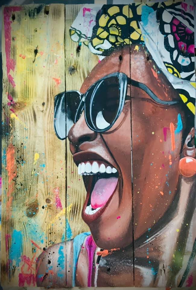 « GA.L peint le plus souvent à l’acrylique sur du bois. Elle aime jouer avec les formes de ce support qui apporte une nouvelle dimension aux silhouettes qu’elle réalise... »