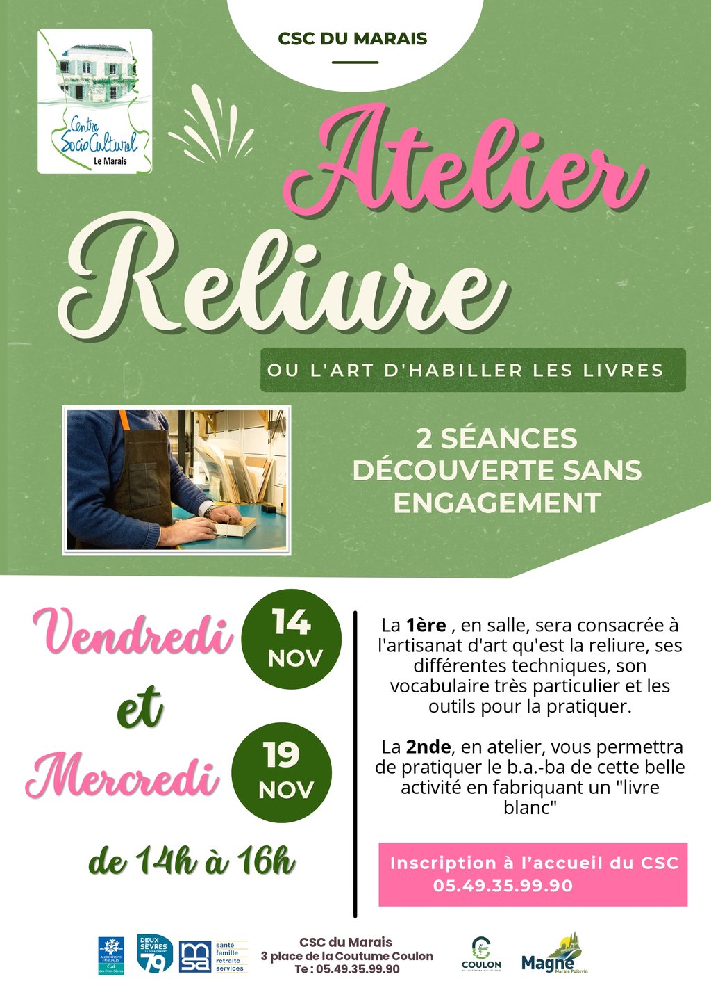 ATELIER RELIURE AU CENTRE SOCIOCULTUREL - 2 SÉANCES « DÉCOUVERTE » : LE 14 ET LE 19 NOVEMBRE DE 14 H À 16 H
