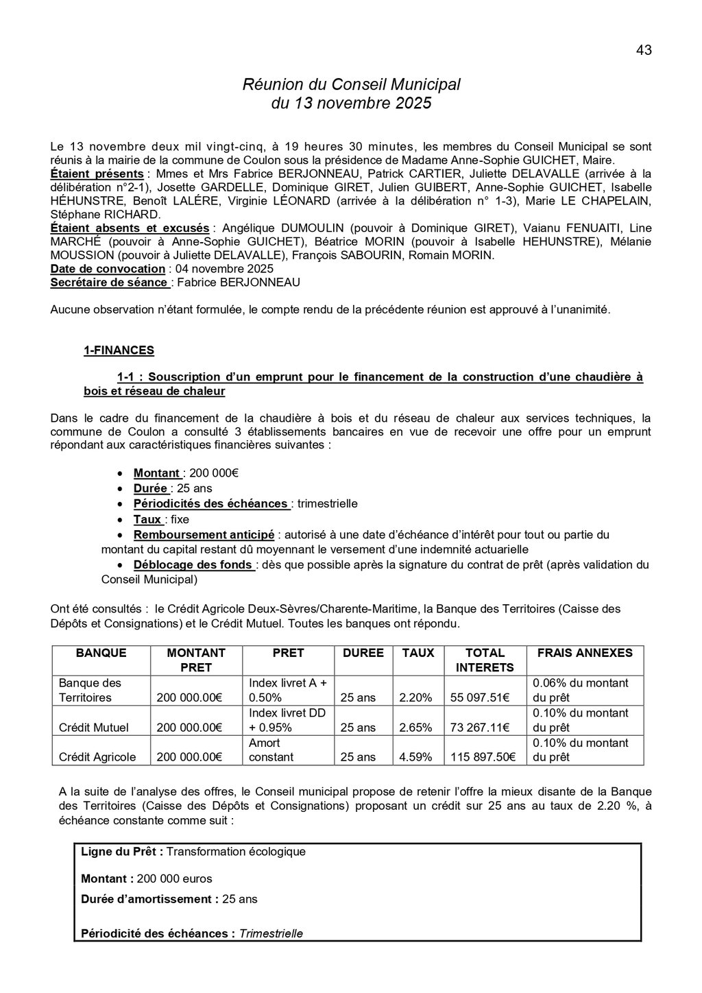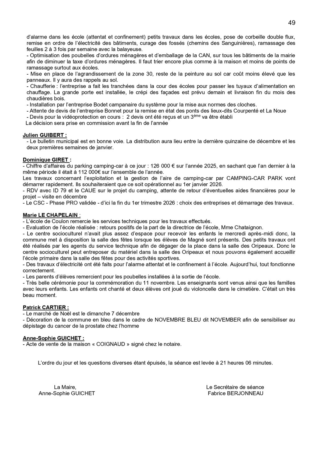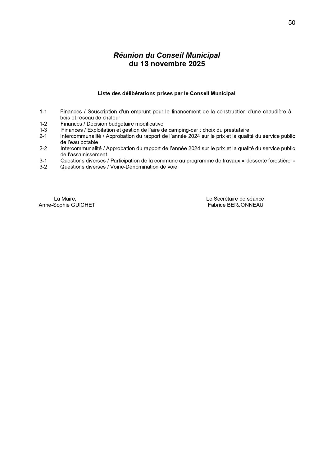 COMPTE RENDU DU CONSEIL MUNICIPAL DU 13 NOVEMBRE 2025