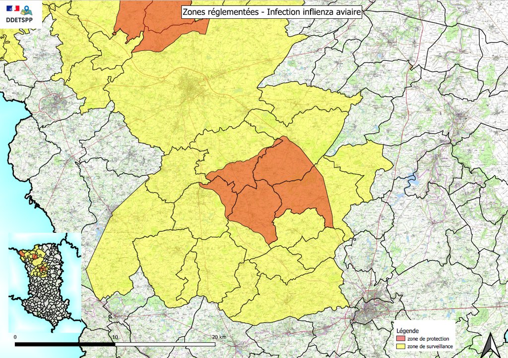 Le Conseil départemental nous informe qu’en raison d’un nouveau foyer de grippe aviaire sur la commune de Clessé, une nouvelle zone réglementée est mise en place.