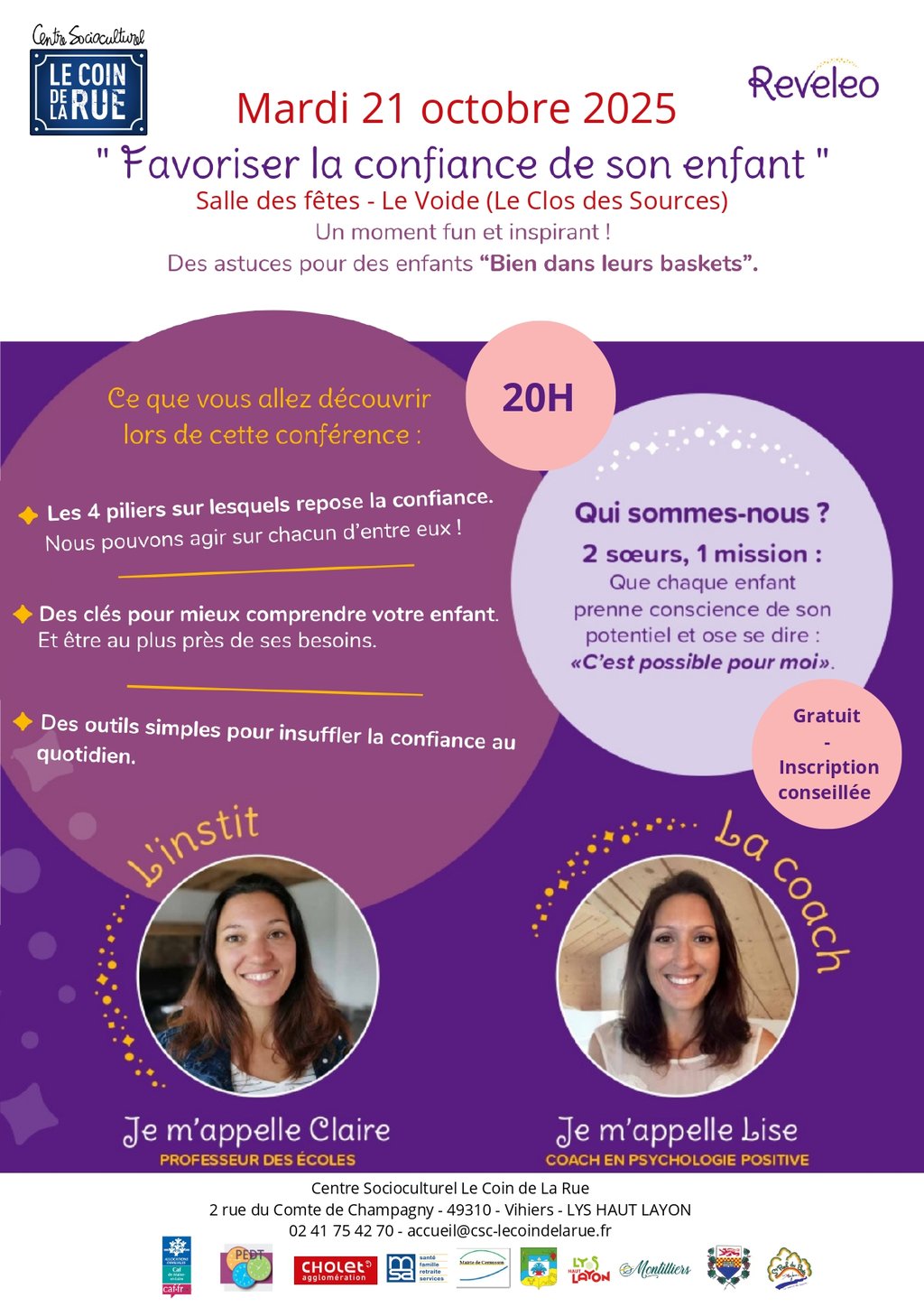 Mardi 21 octobre salle des fêtes du Voide le CSC du Coin de la Rue vous propose de découvrir des astuces comment favoriser la confiance de votre enfant au quotidien