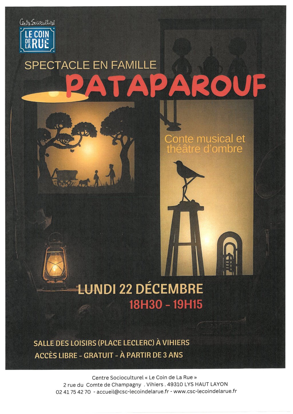 Le CSC du coin de la rue vous propose un spectacle familial le 22 décembre