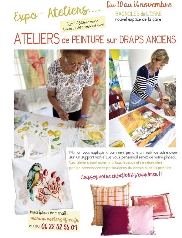 Des ateliers découverte de la PEINTURE TEXTILE vous seront proposés durant toute la durée de l’exposition, l’occasion de vous initier à ce savoir-faire et repartir avec une création en tissus personnalisée.