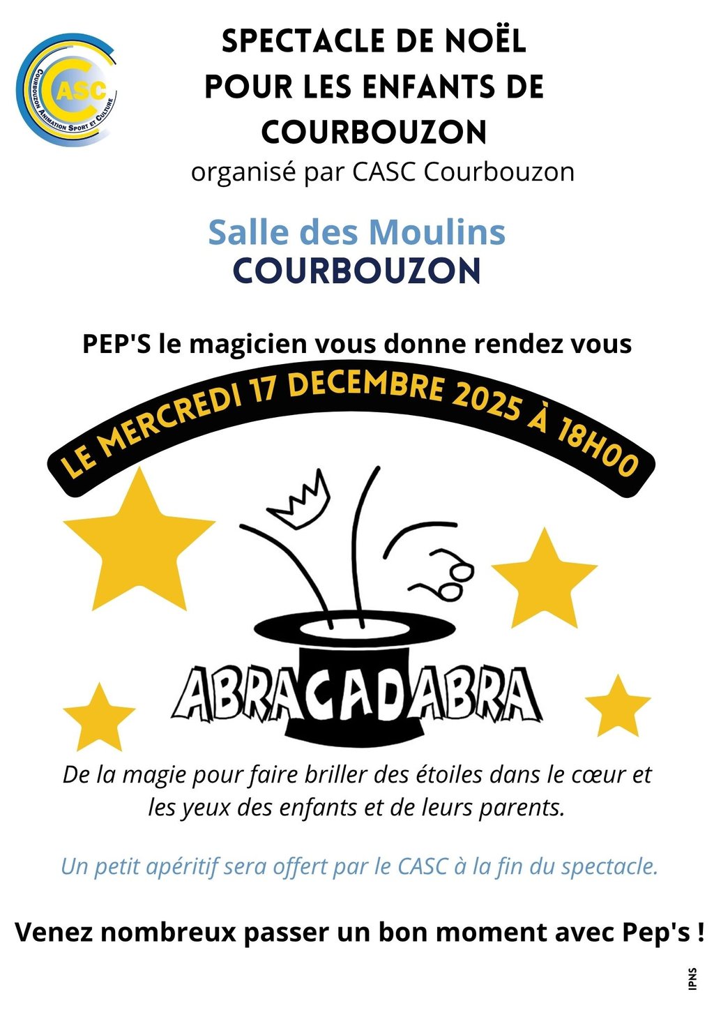 Un petit apéritif, offert par le CASC, clôturera la fin du spectacle ! 🥂🍬