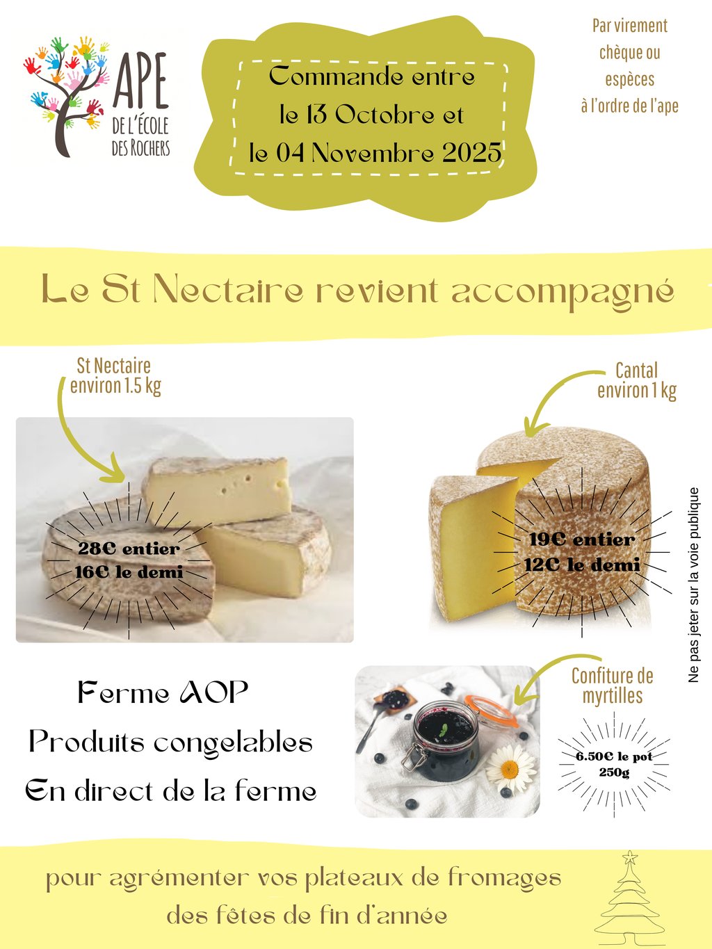L'association des parents d'élèves de l'école des Rochers de Courçay vend du St-Nectaire au profit de son association. Passez vos commandes avant le 4 novembre 2025!