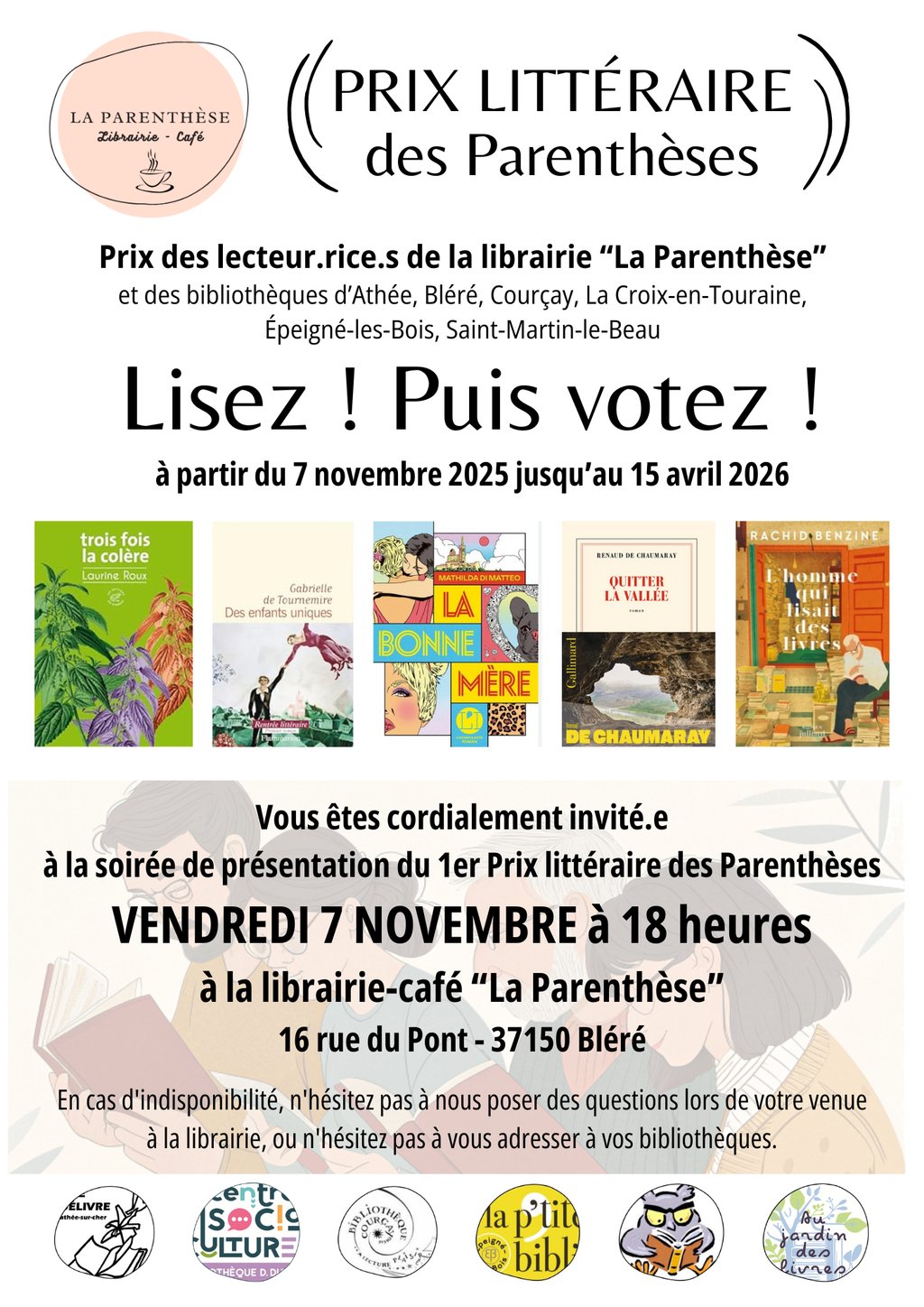 Une présentation des ouvrages aura lieu le 7 novembre 2025 à 18 h à la librairie La parenthèse de Bléré et vous y êtes invités chaleureusement !