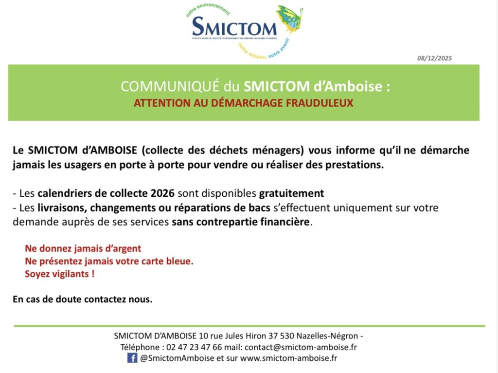 DEMARCHAGE FRAUDULEUX - ALERTE DU SMICTOM D'AMBOISE
