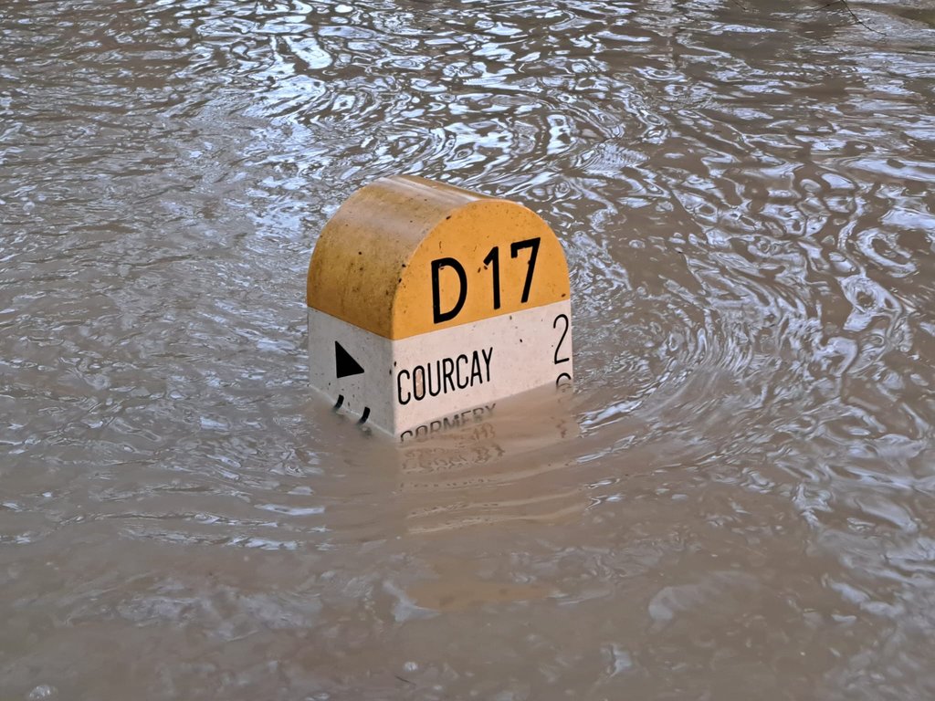 Avis à tous : la route départementale 17 est impraticable en raison de la crue de l'Indre.