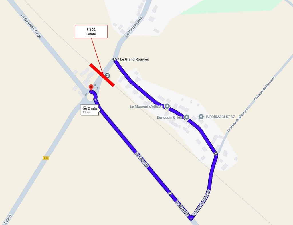⚠Pour raisons de travaux le passage à niveau du Grand-Rouvre sera fermé le 25 février.