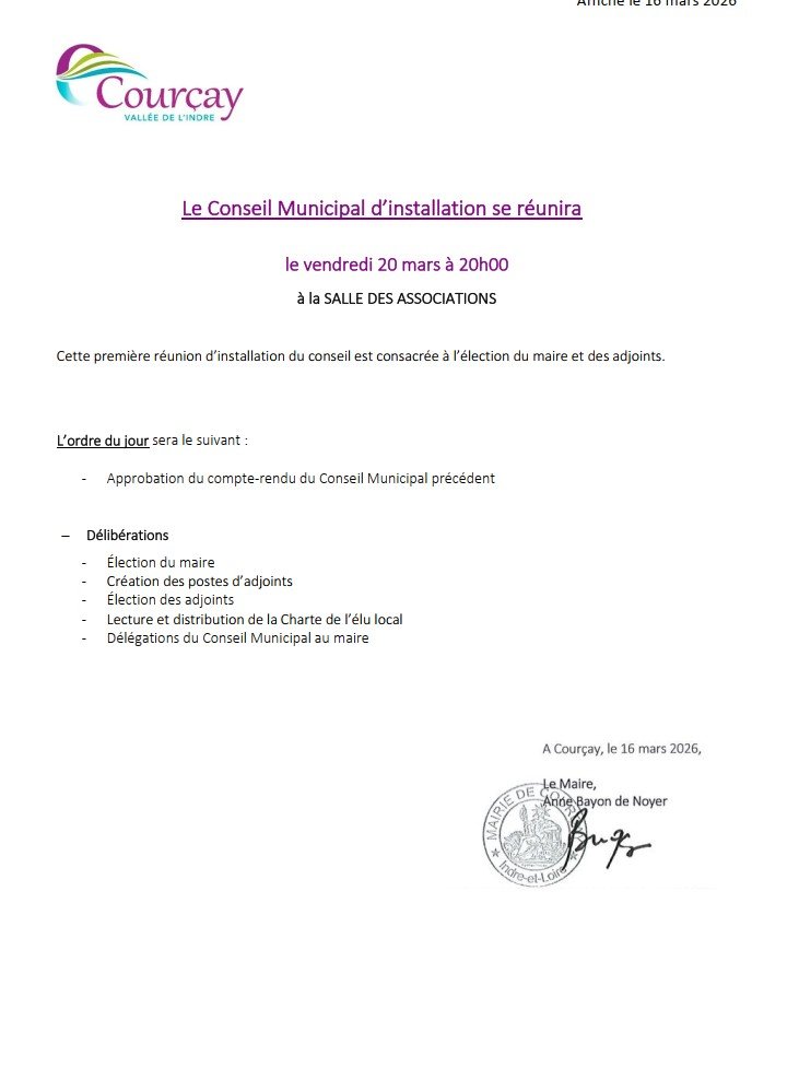 Suite aux élections, le Conseil Municipal d'installation aura lieu :