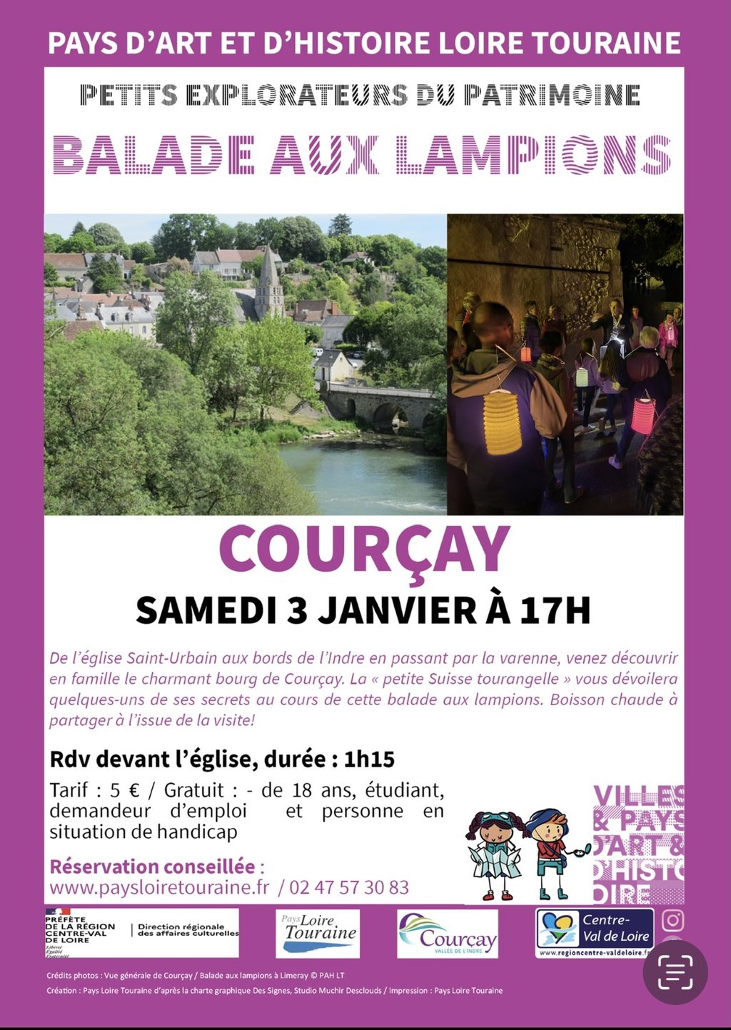 Le Pays d'art et d'histoire Loire Touraine organise à Courçay, le samedi 3 janvier, à 17h00, une balade aux lampions pour découvrir le patrimoine du village.