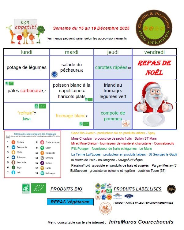 MENU DU 15 AU 19 DÉCEMBRE 2025