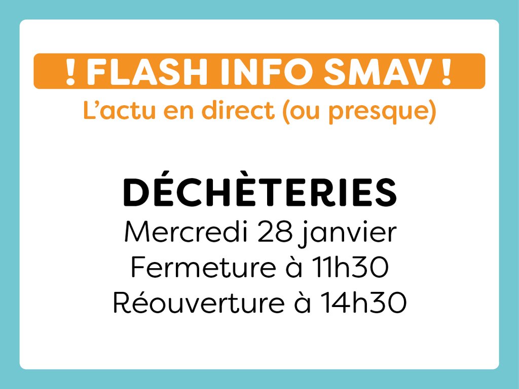L’intégralité des déchèteries fermeront exceptionnellement leur grille à 11h30 le mercredi 28 janvier 2026. Les sites seront ouverts au public dès 14h30.