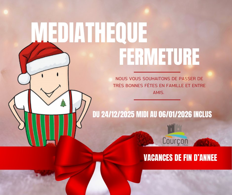 La mĂ©diathĂšque sera fermĂ©e du mercredi 24 dĂ©cembre Ă midi jusquâau 6 janvier 2026 inclus.