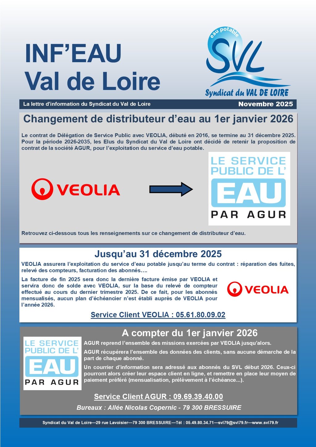 💧 CHANGEMENT DE DISTRIBUTEUR D’EAU AU 1ER JANVIER 2026