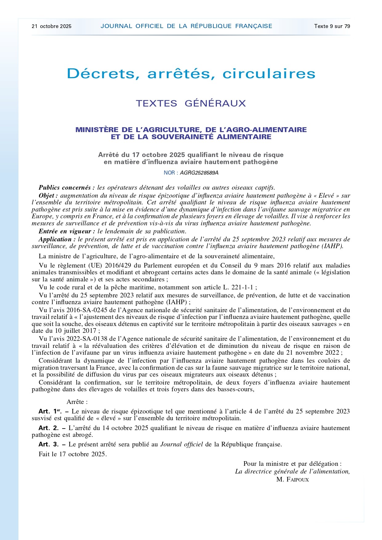 LUTTE CONTRE L'INFLUENZA AVIAIRE - AV...