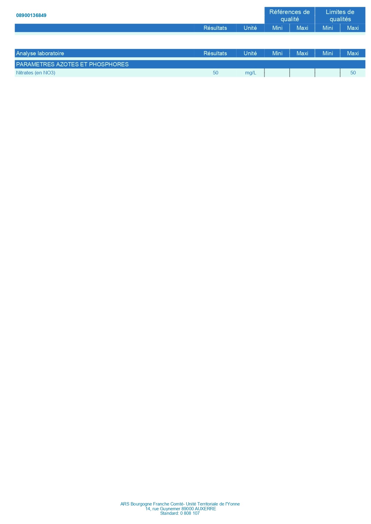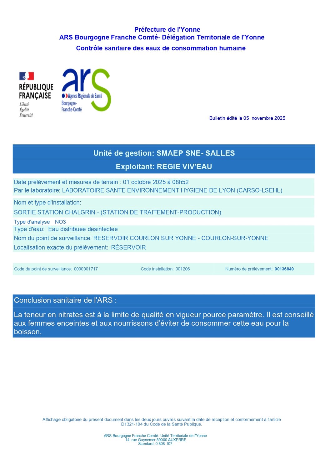 RAPPORT DU CONTROLE SANITAIRE DES EAUX DE CONSOMMATION HUMAINE