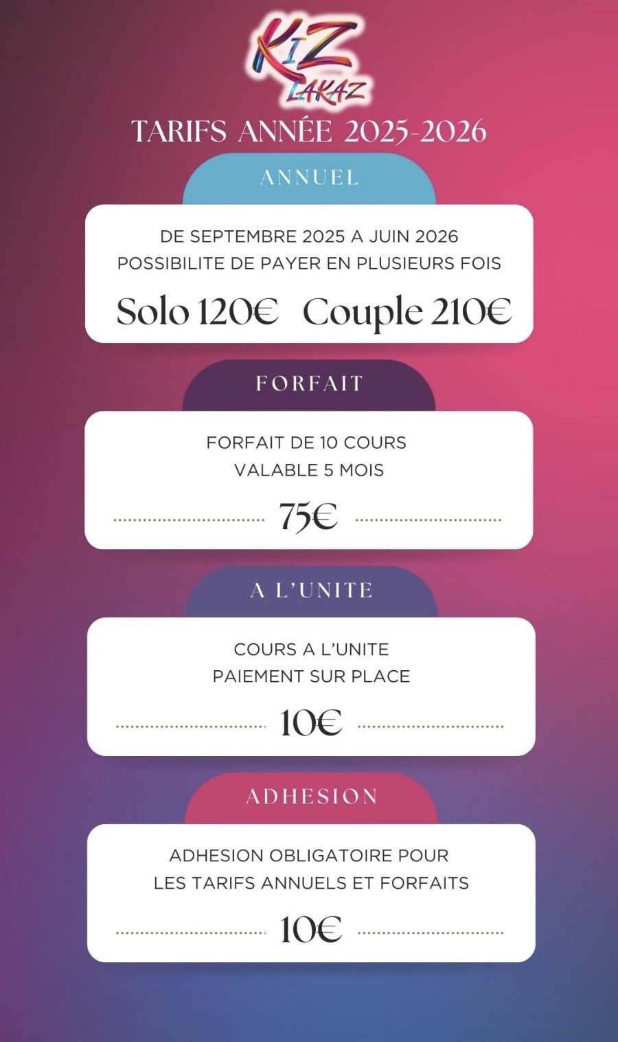 Voici les tarifs :
