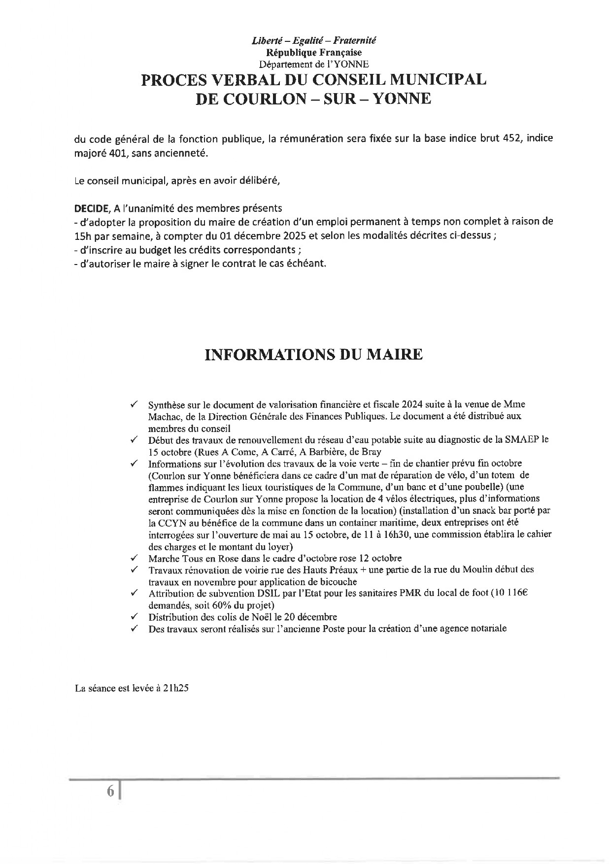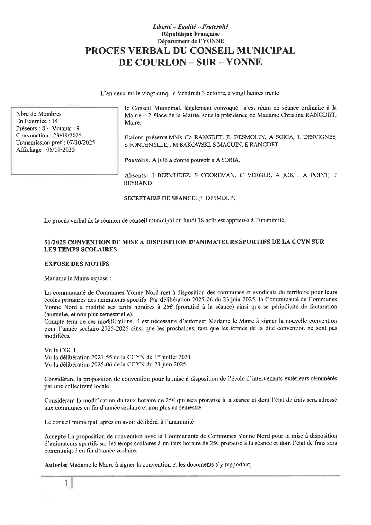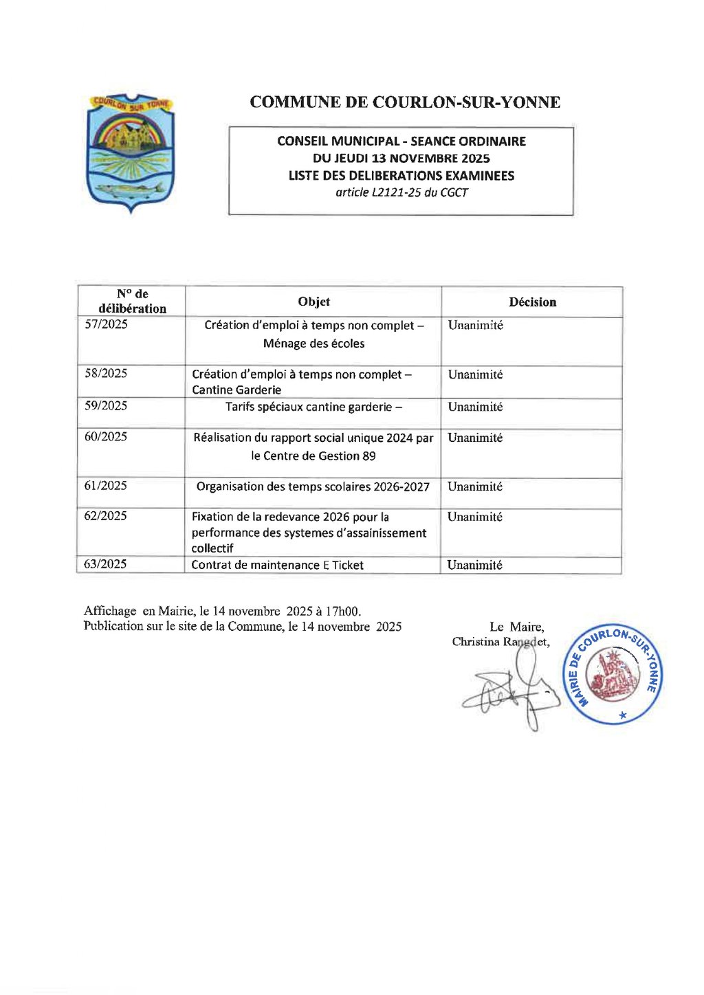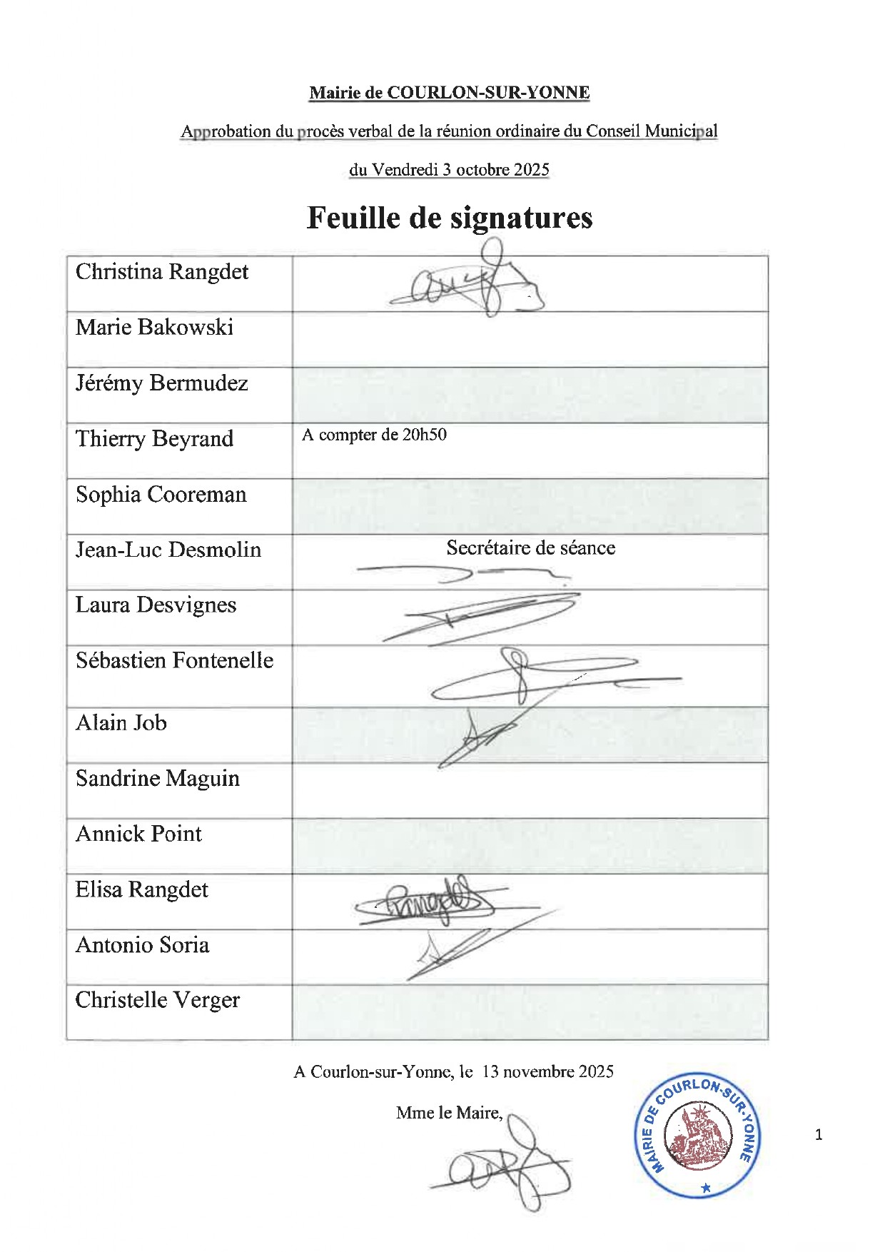 Procès Verbal du Conseil Municipal du 13/11/2025 :