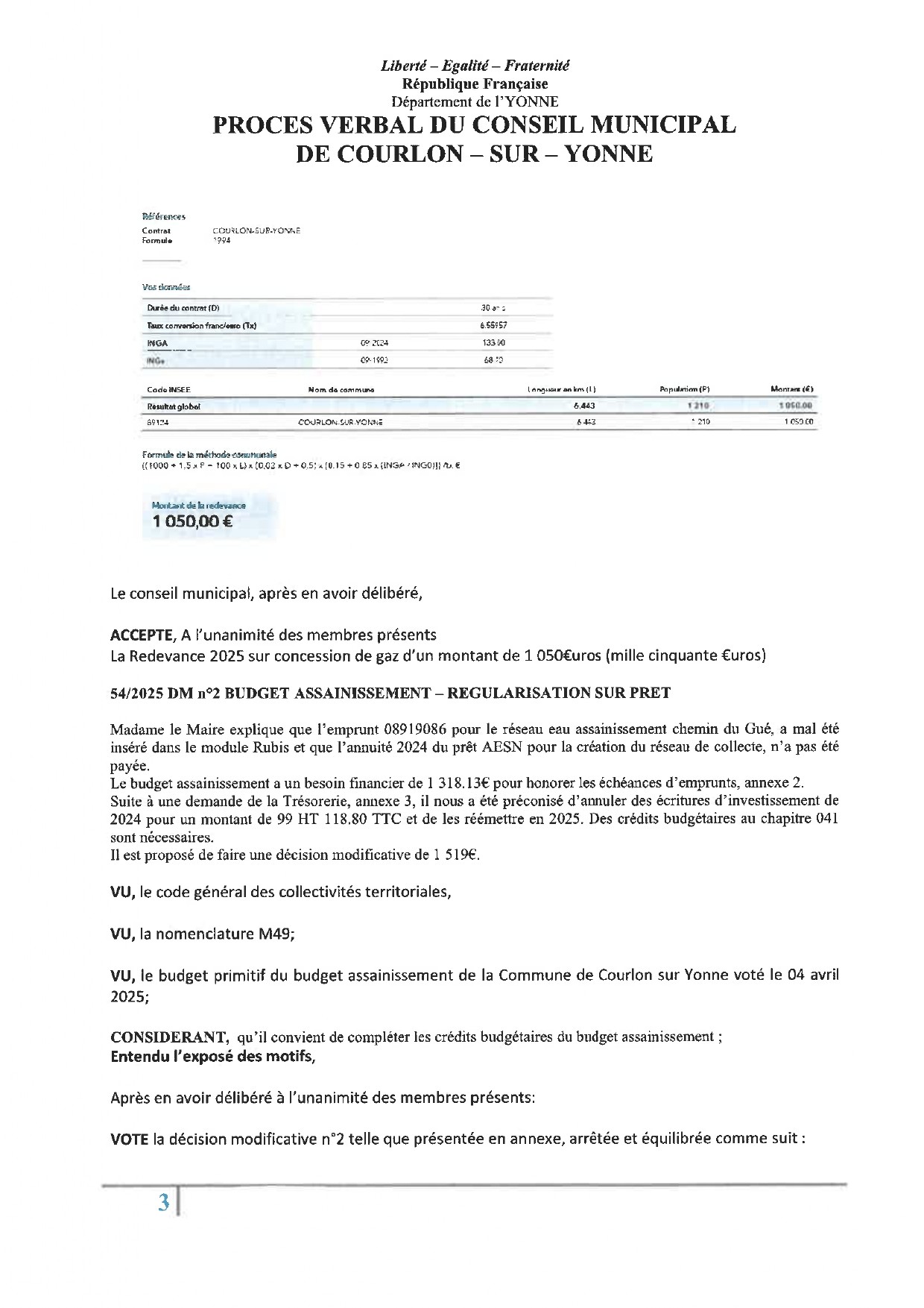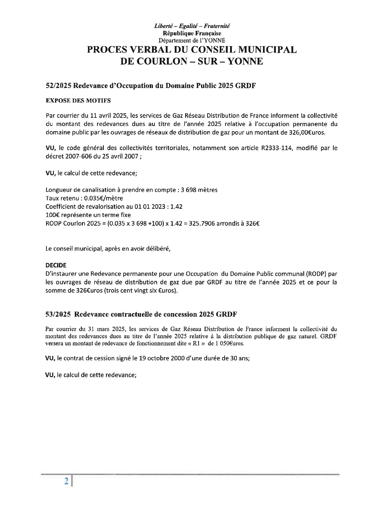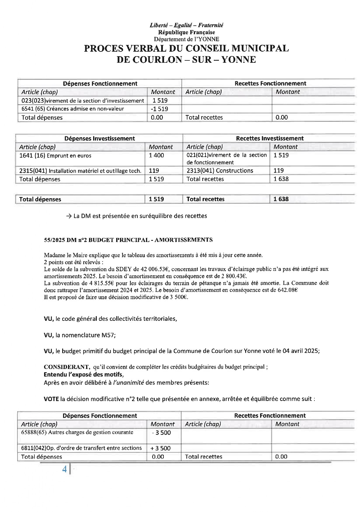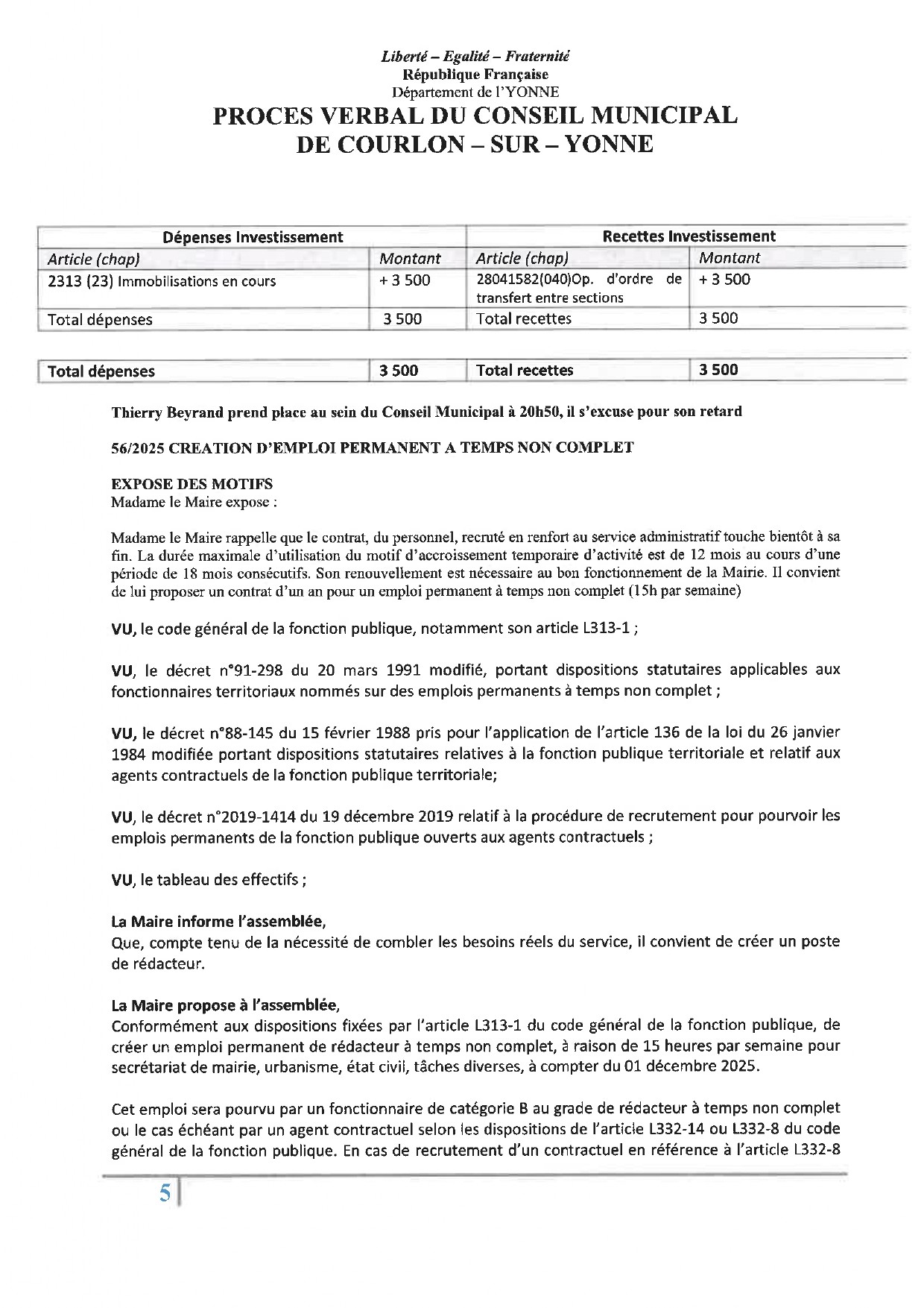 Procès Verbal du Conseil Municipal du 13/11/2025 :