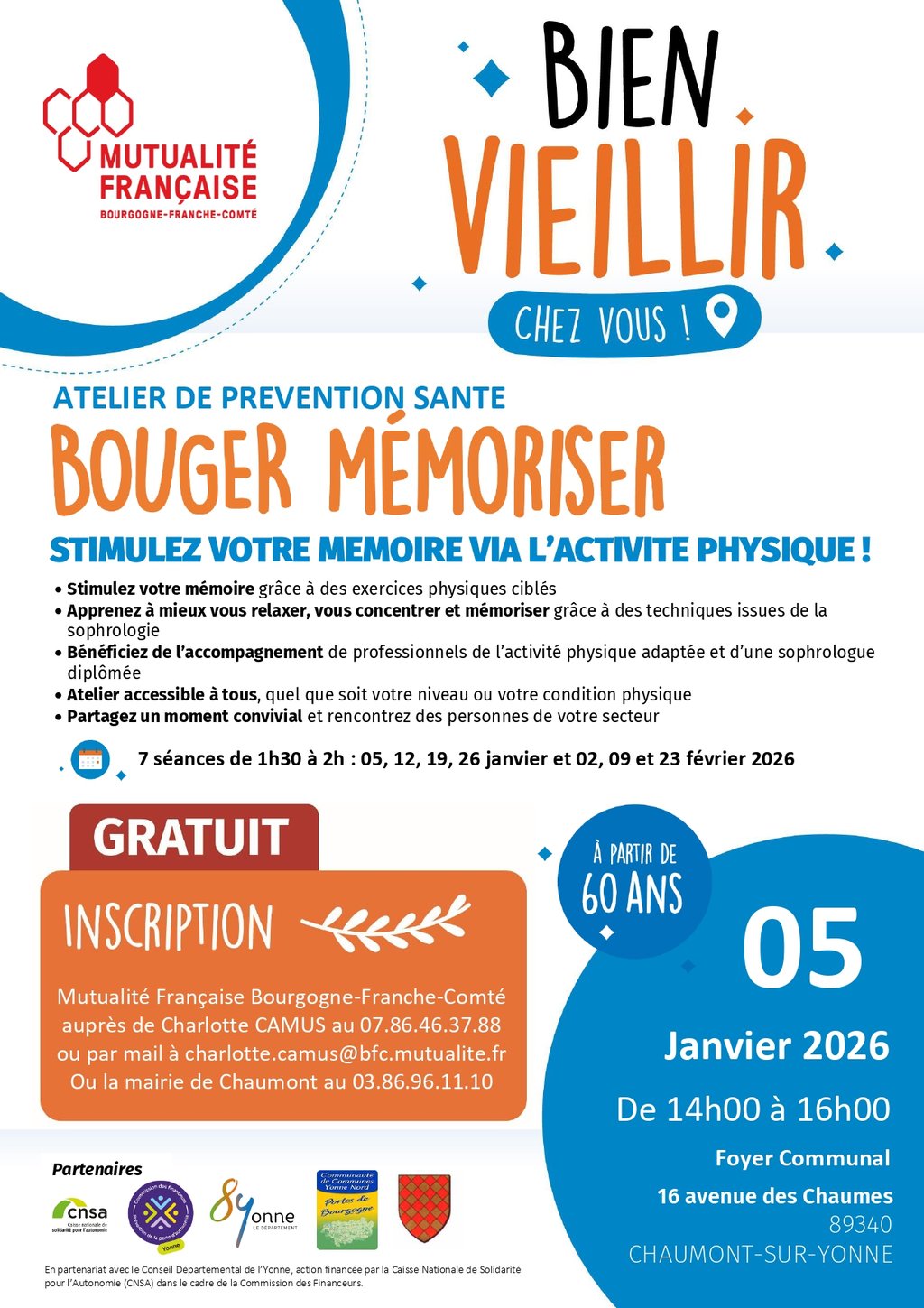 - Lieu : Foyer communal – 16 avenue des Chaumes 89340 CHAUMONT-SUR-YONNE