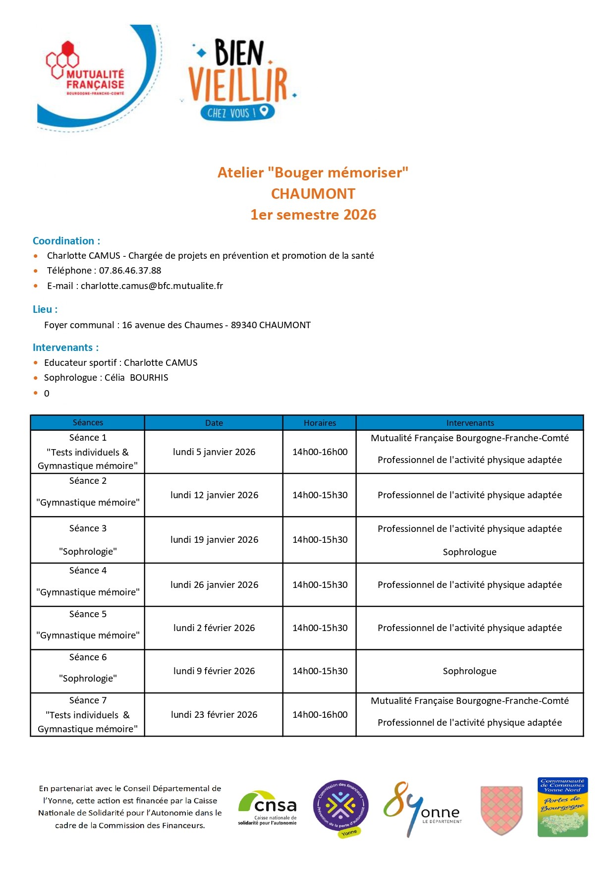 Veuillez contacter Charlotte Camus, Chargée de prévention santé à la Mutualité Française Bourgogne-Franche-Comté : 📞 07.86.46.37.88 / 📧 charlotte.camus@bfc.mutualite.fr.