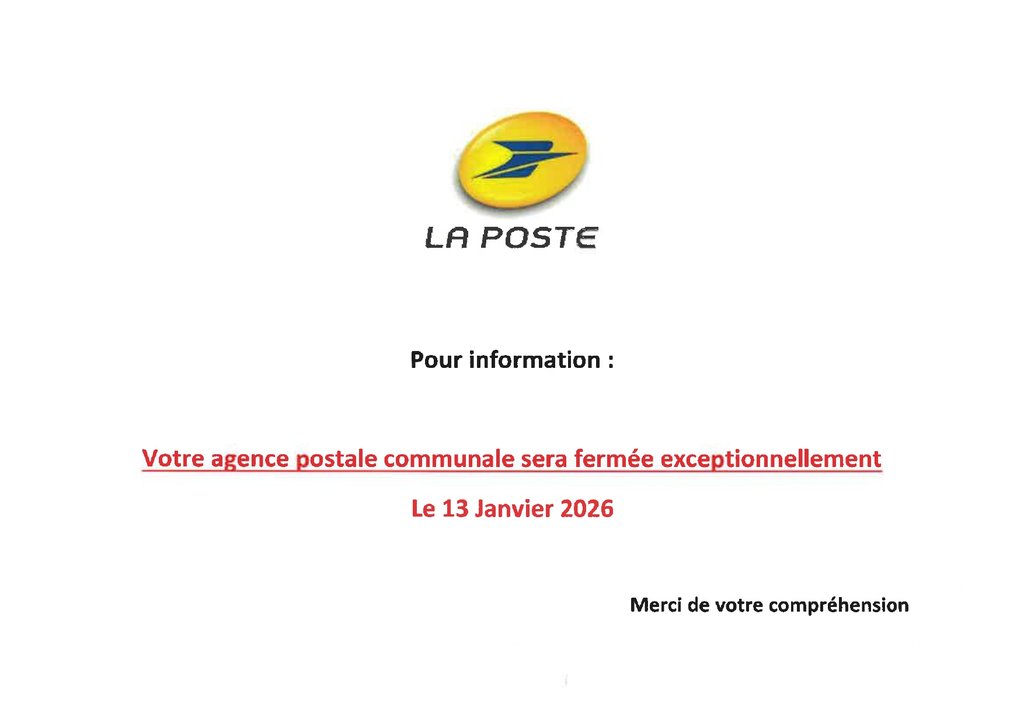 Fermeture exceptionnelle de l'agence postale le mardi 13 Janvier 2026