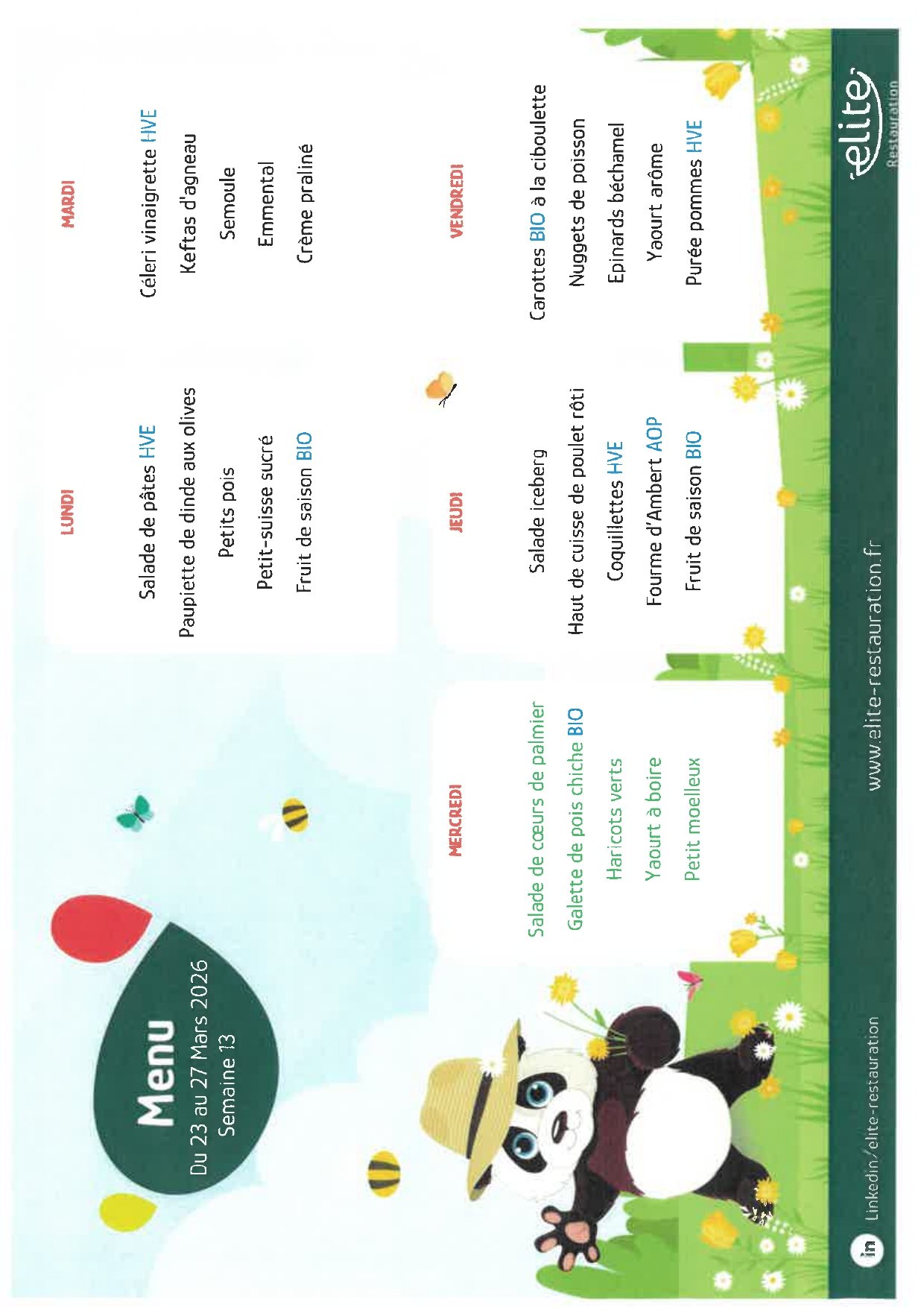Vous trouverez ci-joint les menus de la cantine pour la semaine du 23 au 27 mars 2026.