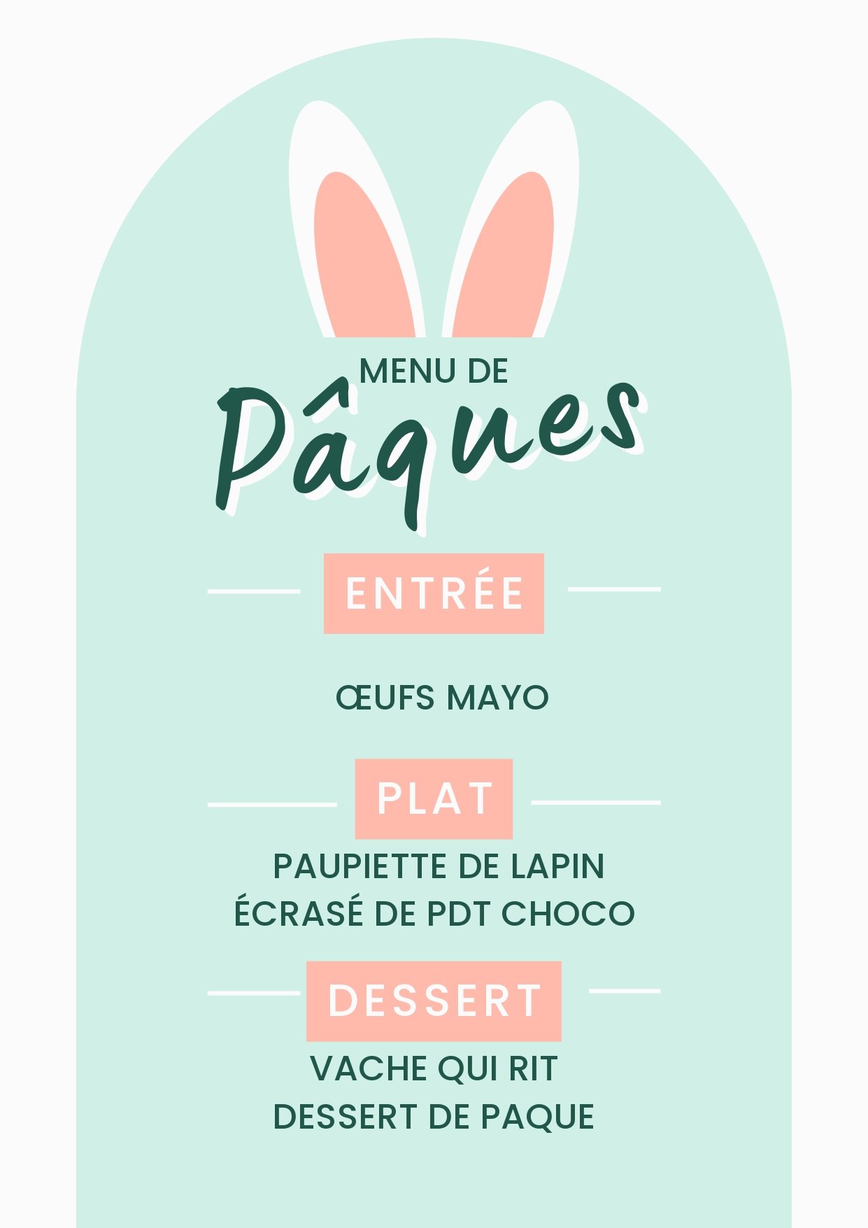 Menu de pâques à la cantine le jeudi 2 Avril 2026